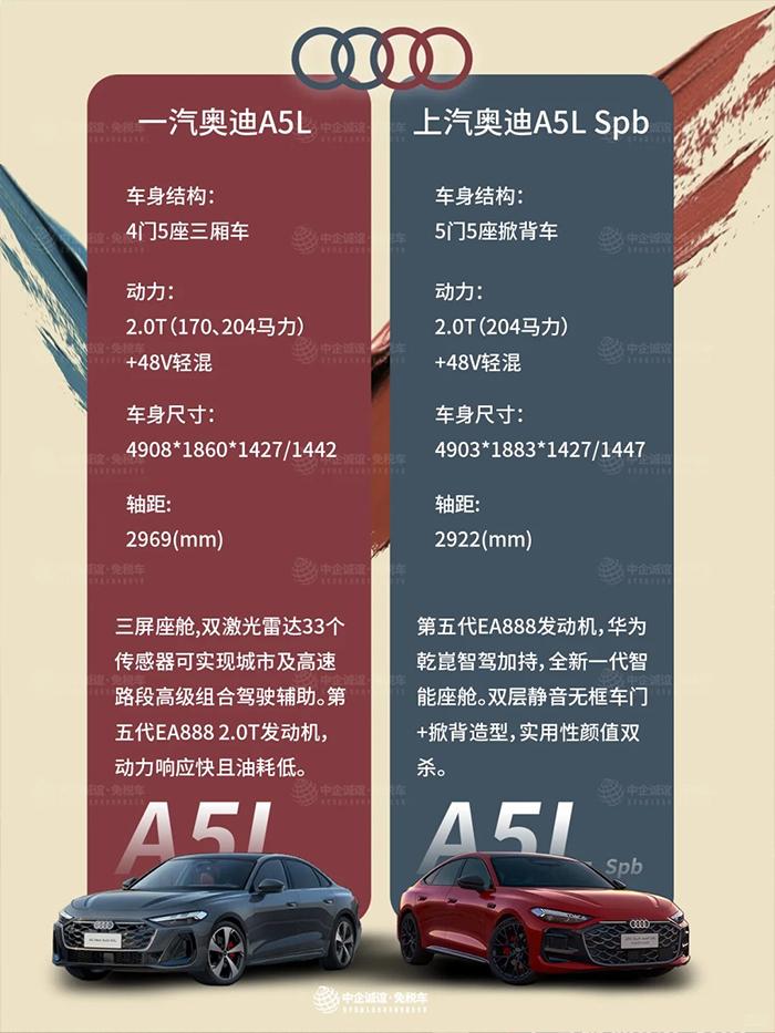 一汽奥迪A5L vs 上汽奥迪A5L怎么选?