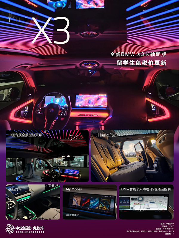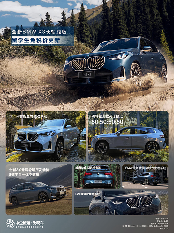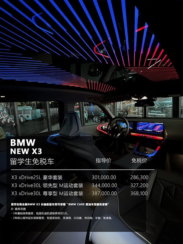而现在,全新宝马X3留学生免税价已强势调整至28.6-36.8万区间,你的心理价位,我们提前超预期实现!