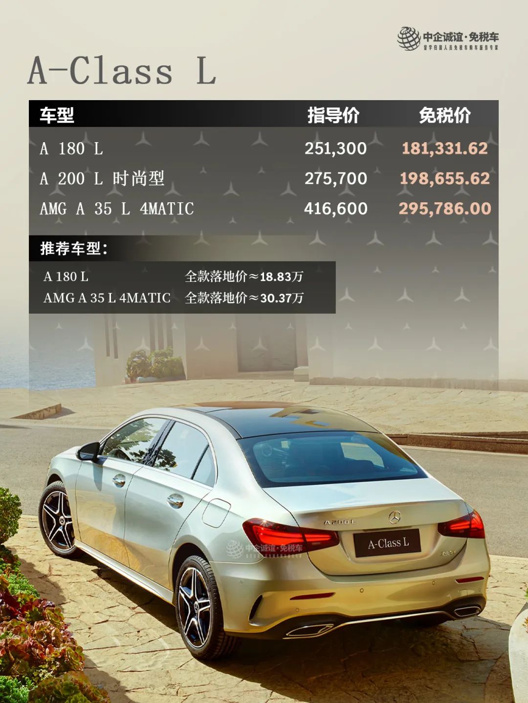 中企诚谊留学生免税车奔驰A级