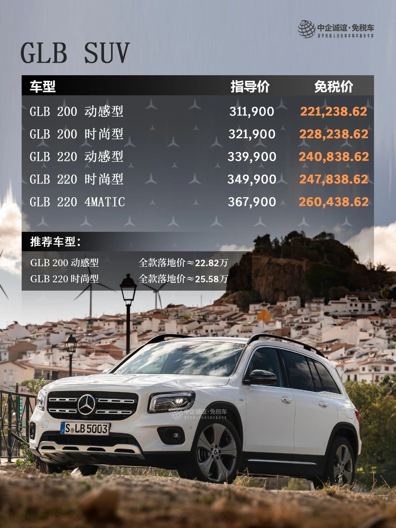 中企诚谊留学生免税车奔驰GLB级