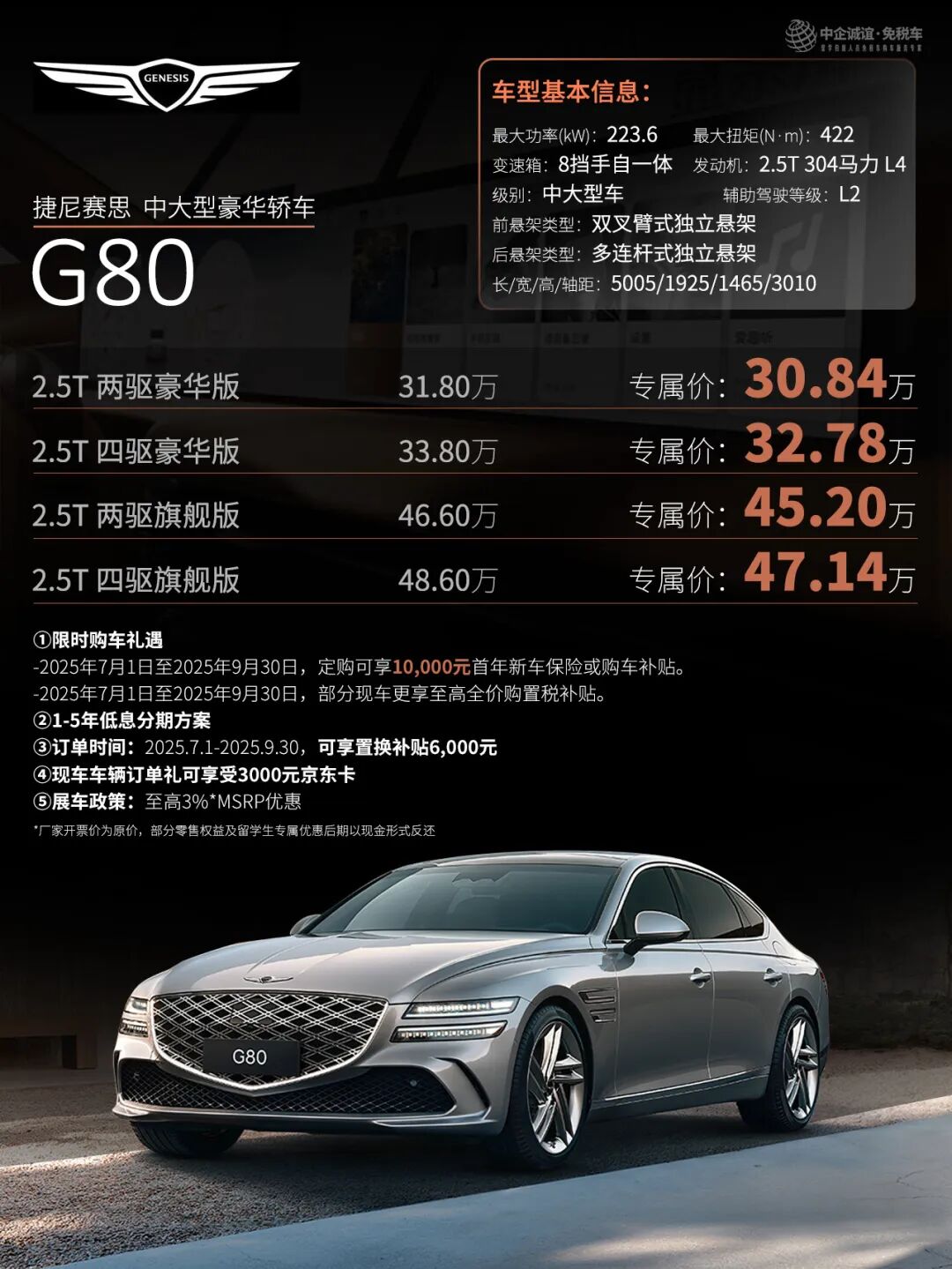 ■捷尼赛思GV70燃油版是一款5门5座中型SUV,有前置后驱和前置四驱两种驱动形式它搭载2.5T涡轮增压4缸汽油发动机,最大功率304马力,最大扭矩422牛·米,匹配8速自动变速箱。