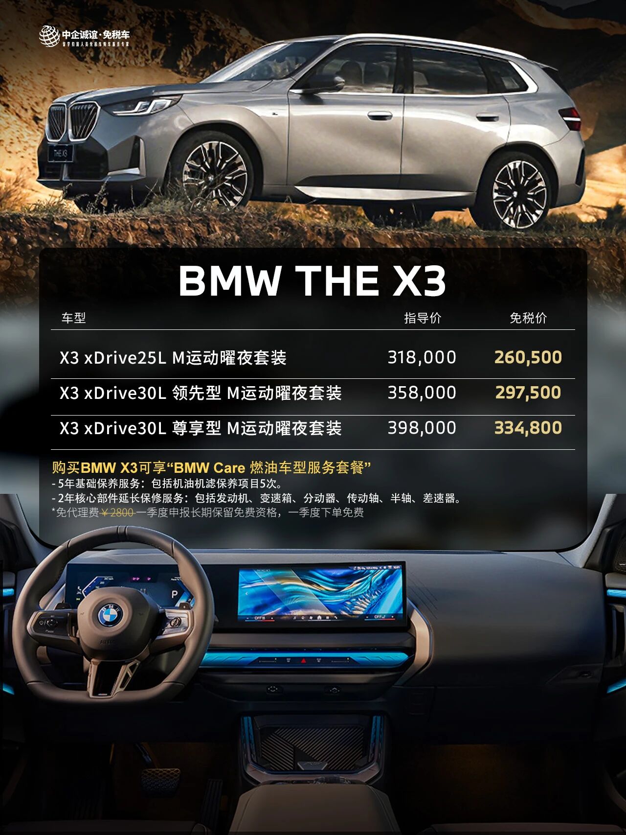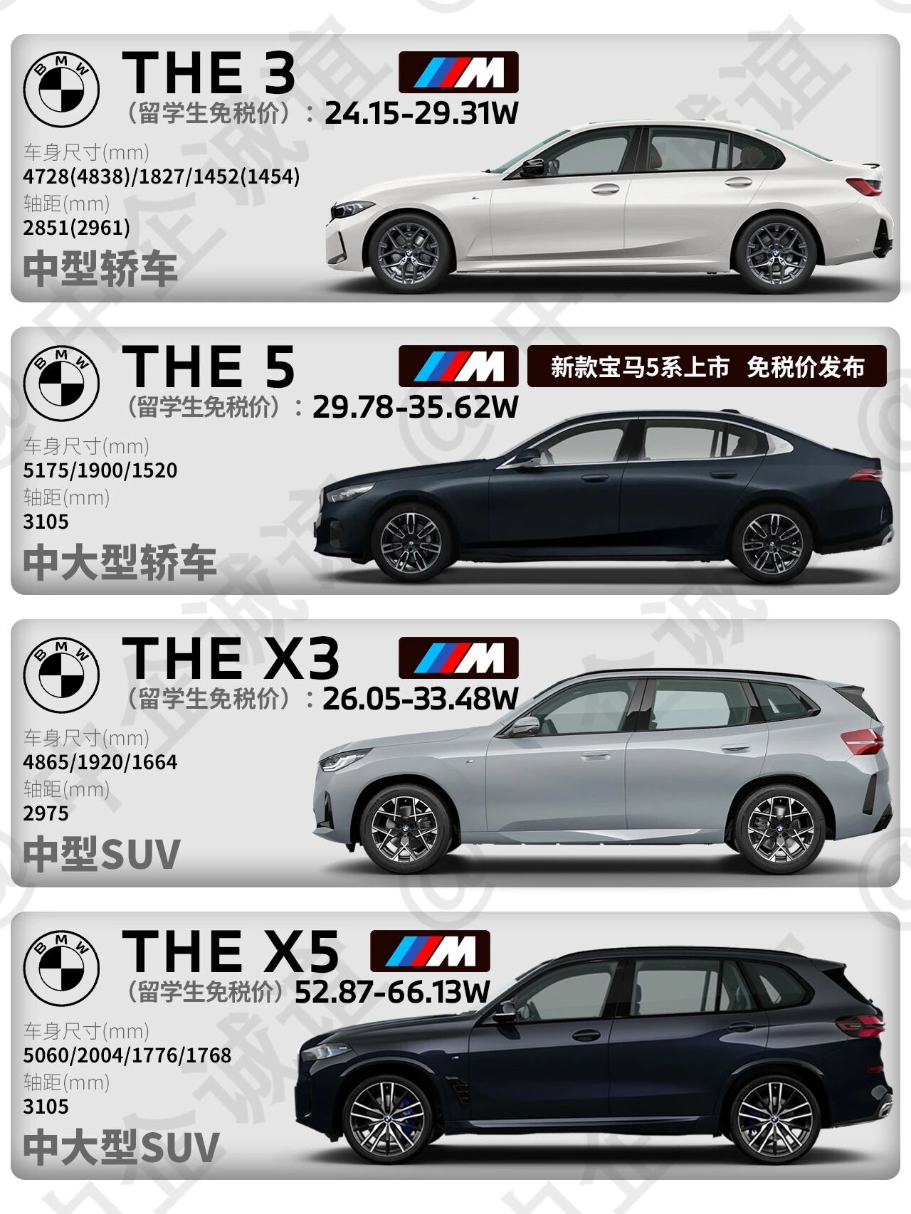 新款宝马3系、X3也刚刚完成更新,指导价同样下调了数万元,这让它们在同级车型中竞争力十足。X5虽然价格较高,但对X5的产品力和影响力来说,52.87万元起的免税价同样让人垂涎,尤其40Li型号,免税车与终端落地差价高达10万元左右。