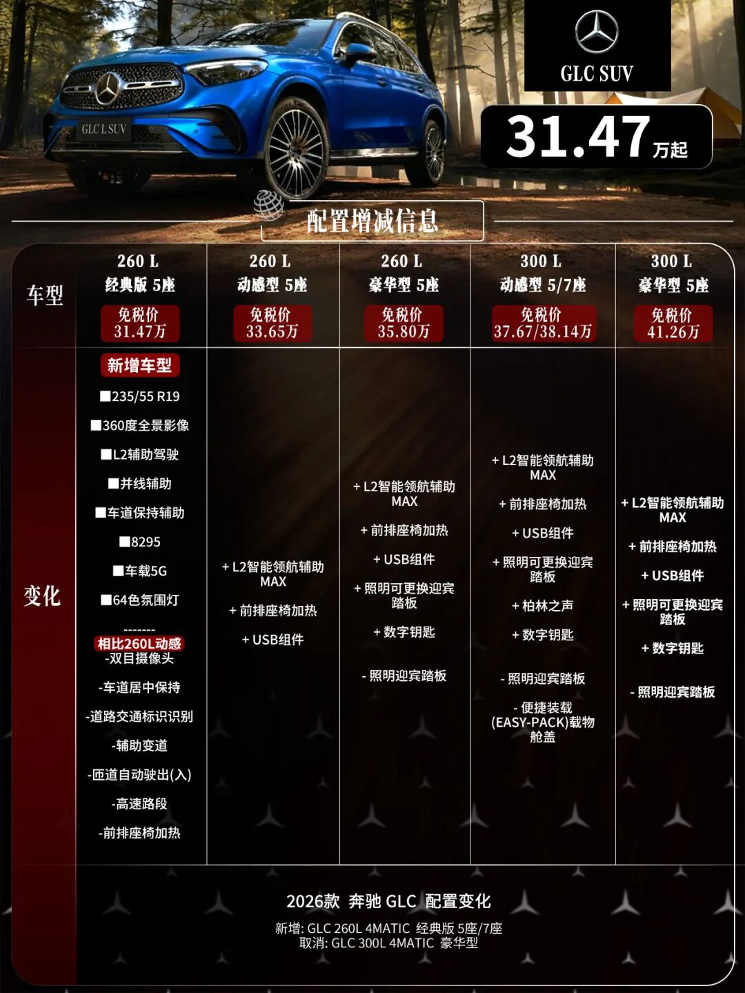 ■新增:GLC 260 L 4MATIC 经典版 5座